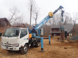 地盤調査にて、要地盤改良のため改良工事も並行して行っております