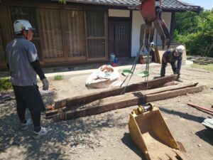 上棟式を終えていよいよ梁の再利用に向け