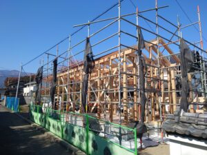 既存の建物解体から始まり、現在は上棟式を終えたところです