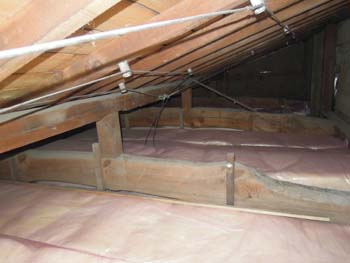 B.は屋根裏に足場板などを敷き込み、何とかして入って、掃除した後、