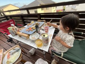 私としては、もしデッキでごはん食べたのが生涯この1回だけだったとしても、3歳の娘と親子3人で楽しく過ごすことができたこの時間が