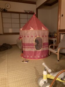 テントが欲しいと言ってピンクの家型のテントを買ってもらいました🏠